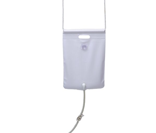 Przenośny prysznic do mycia włosów składa się z worka zakończonego wężem z prysznicową końcówką. Ilość spływającej wody można regulować za pomocą zaworka. Urządzenie doskonale skonfigurowane do współpracy z basenem do mycia głowy.