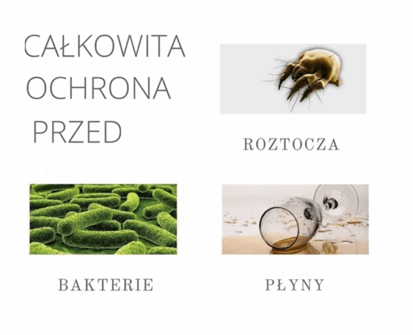 Wodoodporna poszwa na poszwę zapinana jest na zamek błyskawiczny, co w dużej mierze ułatwia zmianę pościeli.