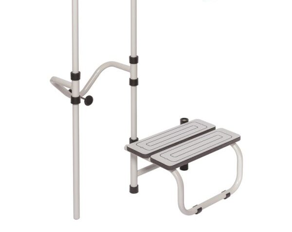 Złożony z poręczy i stopnia zestaw do wanny dla seniorów i niepełnosprawnych polecany jest w przypadku, gdy łazienka pacjenta nie jest wyposażona w kabinę prysznicową, a w wannę i kiedy poszukujemy prostej w montażu, a zarazem stabilnej i trwałej podpory.