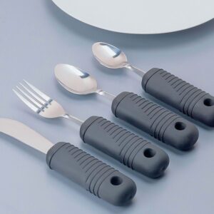 Zestaw sztućców dla niepełnosprawnych-wyginany z grubym uchwytem, polecany jest osobom z chorobami reumatycznymi i dysfunkcjami kończyn górnych. Główkę sztućców, wykonaną z wysokiej jakości stali, można zginać w dwóch płaszczyznach: